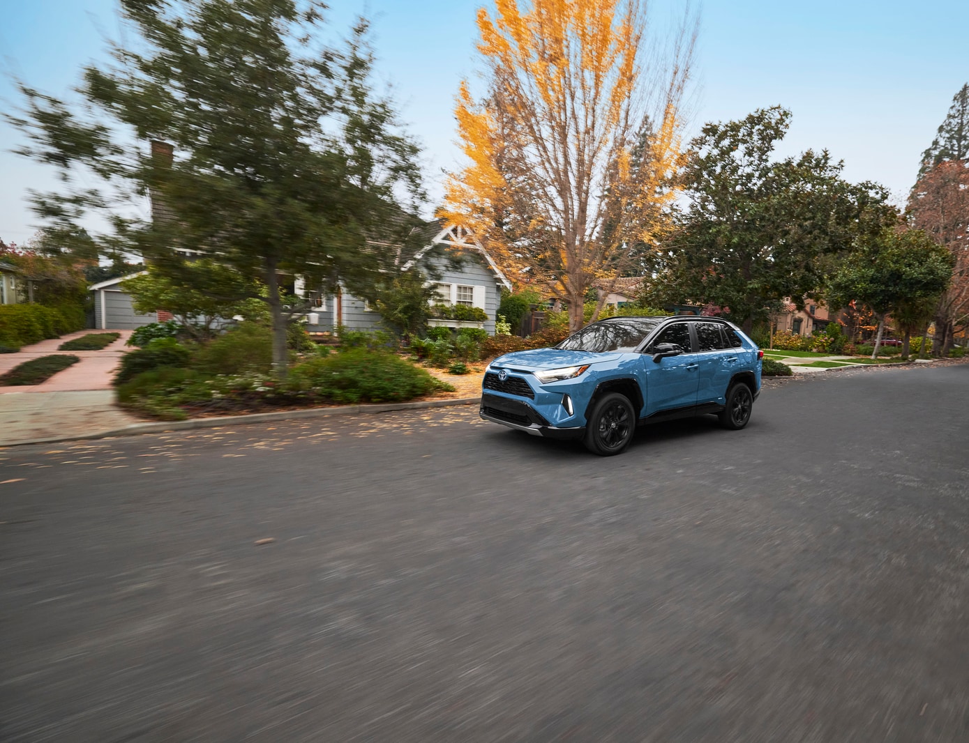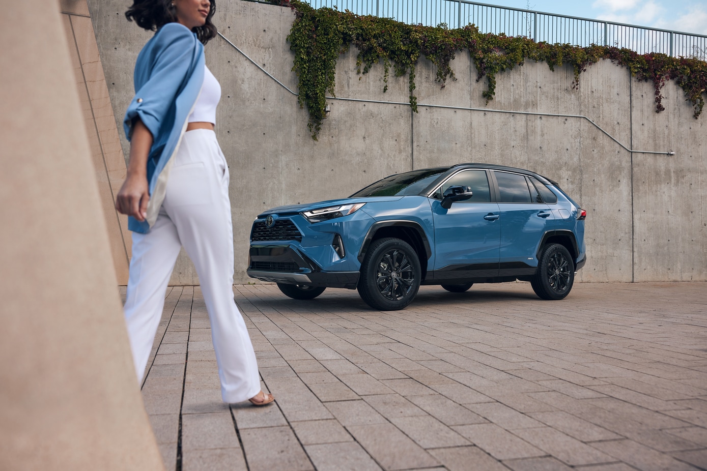 Base LE models have a 10.5-inch Toyota Audio Multimedia touchscreen, 12.3-inch digital gauge cluster, Toyota Safety Sense™ 4.0, fabric-trimmed seats, dual zone automatic climate control, and a Blind Spot Monitor. Step up to the RAV4 SE for blue interior stitching accents, a chrome rear bumper, and 18-inch multi-spoke black sport alloy wheels. A height-adjustable power liftgate is a notable amenity for the XLE Premium, which comes with SofTex®-trimmed heated front seats. Front and Rear Parking Assist is added as well.