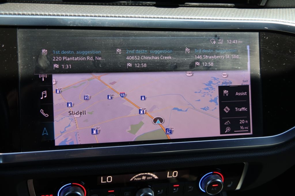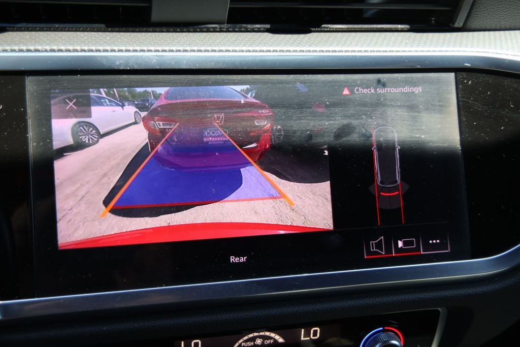 2021 Audi Q3 Premium Plus S Line quattro Check out all these great option's 20" Wheel Package (Wheels: 20" 5-Twin-Spoke Module Design), Black Optic Sport Package (Black Optic Exterior Kit & Roof Rails and S Line Sport Seats), Convenience Package (Alarm w/Motion Sensor, Audi Advanced Key, Audi Parking System Plus, Audi Side Assist, Frameless Auto-Dimming Interior Mirror w/Compass, Heated Power-Folding Exterior Mirrors, and SiriusXM All Access Service), Customizable LED Interior Lighting Package Plus, LED Interior Lighting Package, Premium Plus Package (Adaptive Cruise Assist w/Traffic Jam Assist, Aluminum Spectrum Inlays, Audi Phone Box w/Wireless Charging, Full LED Headlights w/Unique DRL Signature, HomeLink Garage Door Opener, and Stainless Steel Trunk Sill), Technology Package (12.3" Audi Virtual Cockpit Screen, Audi Connect PRIME & PLUS, Bang & Olufsen 3D Sound System, MMI Navigation Plus, MMI Touch Response, and Traffic Sign Recognition), 10 Speakers, 3.533 Axle Ratio, 4-Wheel Disc Brakes, ABS brakes, Air Conditioning, Alloy wheels, AM/FM radio, Audi Beam-Rings, Audi Black Rings & Badges Kit, Audi Guard Protection Kit, Audi smartphone interface (Apple CarPlay/Android Auto), Auto High-beam Headlights, Automatic temperature control, Brake assist, Brown Gray Natural Wood Matte Inlays, Bumpers: body-color, Delay-off headlights, Driver door bin, Driver vanity mirror, Dual front impact airbags, Dual front side impact airbags, Electronic Stability Control, Exterior Parking Camera Rear, Four wheel independent suspension, Front anti-roll bar, Front Bucket Seats, Front Center Armrest, Front dual zone A/C, Front fog lights, Front reading lights, Fully automatic headlights, Heated door mirrors, Heated Front Bucket Seats, Heated front seats, Illuminated entry, Knee airbag, Leather Seating Surfaces, Leather Shift Knob, Leather steering wheel, Low tire pressure warning, Occupant sensing airbag, Outside temperature display, Overhead airbag, Overhead console, Panic alarm, Passenger door bin, Passenger vanity mirror, Power door mirrors, Power driver seat, Power Liftgate, Power moonroof, Power passenger seat, Power steering, Power windows, Radio data system, Radio: Audi Sound System, Rain sensing wipers, Rear air conditioning, Rear anti-roll bar, Rear fog lights, Rear reading lights, Rear seat center armrest, Rear window defroster, Rear window wiper, Remote keyless entry, Speed control, Speed-sensing steering, Split folding rear seat, Spoiler, Steering wheel mounted audio controls, Tachometer, Telescoping steering wheel, Tilt steering wheel, Traction control, Trip computer, Turn signal indicator mirrors, Variably intermittent wipers, and Wheels: 18" 5-Twin-Spoke Dynamic Design. 20/28 City/Highway MPG