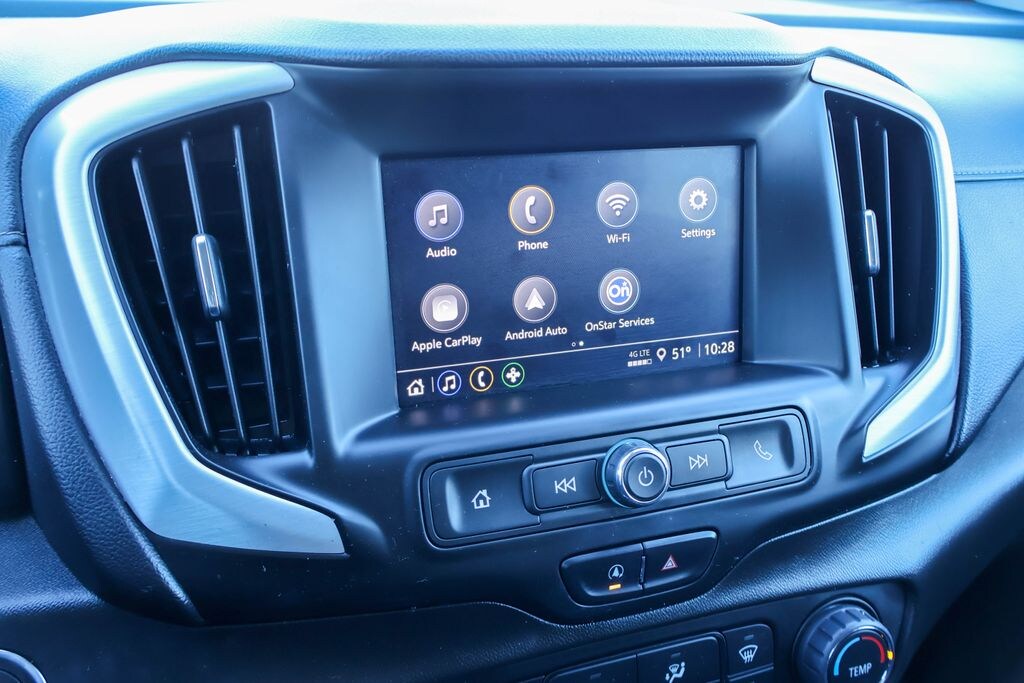 2022 GMC Terrain SLE Check out all these great option's GMC Pro Safety Plus (Adaptive Cruise Control, Lane Change Alert w/Side Blind Zone Alert, Outside Heated Power-Adjustable Mirrors, Rear Cross-Traffic Alert, Rear Park Assist, and Safety Alert Seat), Preferred Equipment Group 3SA, 2 USB Data Ports w/Auxiliary Input Jack, 3.47 Axle Ratio, 4-Way Manual Driver's Seat, 4-Way Manual Front Passenger Seat, 4-Wheel Disc Brakes, 4.2" Multi-Color Driver Information Screen, 6 Speakers, 6-Speaker Audio System Feature, ABS brakes, Air Conditioning, Alloy wheels, AM/FM radio: SiriusXM, Auto High-beam Headlights, Auto-dimming Rear-View mirror, Automatic temperature control, Bluetooth® For Phone, Brake assist, Bumpers: body-color, Compass, Delay-off headlights, Driver door bin, Driver vanity mirror, Dual front impact airbags, Dual front side impact airbags, Electronic Stability Control, Emergency communication system: OnStar Guidance, Four wheel independent suspension, Front anti-roll bar, Front Bucket Seats, Front Center Armrest, Front reading lights, Fully automatic headlights, Heated door mirrors, Illuminated entry, Low tire pressure warning, Occupant sensing airbag, Outside temperature display, Overhead airbag, Overhead console, Panic alarm, Passenger door bin, Passenger vanity mirror, Power door mirrors, Power steering, Power windows, Premium Cloth Seat Trim, Radio data system, Radio: GMC Infotainment Audio System w/7" Display, Rear anti-roll bar, Rear seat center armrest, Rear window defroster, Rear window wiper, Remote keyless entry, Security system, SiriusXM Radio, Speed control, Speed-sensing steering, Split folding rear seat, Spoiler, Steering wheel mounted audio controls, Tachometer, Telescoping steering wheel, Tilt steering wheel, Traction control, Trip computer, Variably intermittent wipers, Wheels: 17" x 7" Silver Painted Aluminum, and Wireless Apple CarPlay/Wireless Android Auto. 25/30 City/Highway MPG