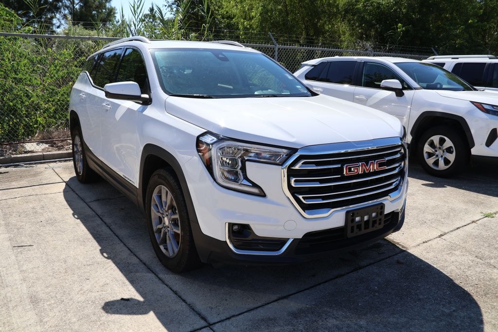 2024 GMC Terrain SLT Check out all these great option's License Plate Front Mounting Package, Preferred Equipment Group 4SA, 2 USB Data Ports, 2 USB Data Ports w/SD Card Reader, 3.47 Final Drive Axle Ratio, 4-Wheel Disc Brakes, 6 Speakers, 6-Speaker Audio System Feature, 6-Way Power Front Passenger Seat, 8-Way Power Driver Seat Adjuster, ABS brakes, Air Conditioning, Alloy wheels, AM/FM radio: SiriusXM, Auto High-beam Headlights, Auto-dimming Rear-View mirror, Automatic temperature control, Bluetooth® For Phone, Brake assist, Bumpers: body-color, Compass, Delay-off headlights, Deleted 3 Years of Remote Access, Driver & Front Passenger Heated Seats, Driver door bin, Driver vanity mirror, Dual front impact airbags, Dual front side impact airbags, Electronic Stability Control, Emergency communication system: OnStar and GMC connected services capable, Four wheel independent suspension, Front anti-roll bar, Front Bucket Seats, Front Center Armrest, Front dual zone A/C, Front fog lights, Front Passenger 2-Way Power Lumbar, Front reading lights, Fully automatic headlights, Garage door transmitter, Heated door mirrors, Heated front seats, Heated steering wheel, Illuminated entry, Low tire pressure warning, Memory seat, Occupant sensing airbag, Outside temperature display, Overhead airbag, Overhead console, Panic alarm, Passenger door bin, Passenger vanity mirror, Perforated Leather-Appointed Seat Trim, Power door mirrors, Power Driver Lumbar Control, Power driver seat, Power Liftgate, Power passenger seat, Power steering, Power windows, Radio data system, Radio: GMC Infotainment Audio System w/8" Display, Rear anti-roll bar, Rear seat center armrest, Rear window defroster, Rear window wiper, Remote keyless entry, Roof rack: rails only, Security system, SiriusXM, Speed control, Speed-sensing steering, Split folding rear seat, Spoiler, Steering wheel mounted audio controls, Tachometer, Telescoping steering wheel, Tilt steering wheel, Traction control, Trip computer, Turn signal indicator mirrors, Variably intermittent wipers, Wheels: 18" x 7" Silver Painted Aluminum, and Wireless Apple CarPlay/Wireless Android Auto. Recent Arrival! 23/28 City/Highway MPG