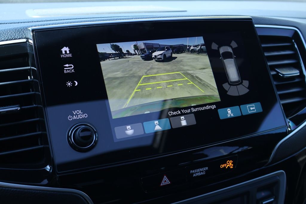 2019 Honda Passport Elite Check out all these great option's 10 Speakers, 4-Wheel Disc Brakes, 4.334 Axle Ratio, A/V remote: CabinControl, ABS brakes, Air Conditioning, Alloy wheels, AM/FM radio: SiriusXM, Apple CarPlay/Android Auto, Auto High-beam Headlights, Auto-dimming door mirrors, Auto-dimming Rear-View mirror, Automatic temperature control, Blind Spot Information (BSI) System warning, Brake assist, Bumpers: body-color, Compass, Delay-off headlights, Driver door bin, Driver vanity mirror, Driver's Seat Mounted Armrest, Dual front impact airbags, Dual front side impact airbags, Electronic Stability Control, Emergency communication system: HondaLink, Exterior Parking Camera Rear, Forward collision: Collision Mitigation Braking System (CMBS) + FCW mitigation, Four wheel independent suspension, Front anti-roll bar, Front Bucket Seats, Front Center Armrest, Front dual zone A/C, Front fog lights, Front reading lights, Fully automatic headlights, Garage door transmitter: HomeLink, Heated & Ventilated Front Bucket Seats, Heated door mirrors, Heated front seats, Heated rear seats, Heated steering wheel, Illuminated entry, Lane departure: Lane Keeping Assist System (LKAS) active, Low tire pressure warning, Memory seat, Navigation system: Honda Satellite-Linked Navigation System, Occupant sensing airbag, Outside temperature display, Overhead airbag, Overhead console, Panic alarm, Passenger door bin, Passenger seat mounted armrest, Passenger vanity mirror, Perforated Leather-Trimmed Seats, Power door mirrors, Power driver seat, Power Liftgate, Power moonroof, Power passenger seat, Power steering, Power windows, Radio data system, Radio: 540-Watt Premium Audio System w/10 Speakers, Rain sensing wipers, Rear air conditioning, Rear anti-roll bar, Rear reading lights, Rear seat center armrest, Rear window defroster, Rear window wiper, Remote keyless entry, Roof rack: rails only, Security system, Speed control, Speed-sensing steering, Split folding rear seat, Spoiler, Steering wheel mounted audio controls, Tachometer, Telescoping steering wheel, Tilt steering wheel, Traction control, Trip computer, Turn signal indicator mirrors, Variably intermittent wipers, Ventilated front seats, and Wheels: 20" Solid-Spoke Gloss Black Alloy.