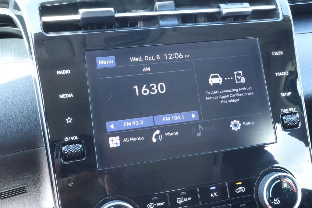 2024 Hyundai Tucson SE Check out all these great option's Option Group 01, Apple CarPlay & Android Auto, Auto High-beam Headlights, Exterior Parking Camera Rear, 3.648 Axle Ratio, 4-Wheel Disc Brakes, 6 Speakers, ABS brakes, Air Conditioning, Alloy wheels, AM/FM radio, Brake assist, Bumpers: body-color, Delay-off headlights, Driver door bin, Driver vanity mirror, Dual front impact airbags, Dual front side impact airbags, Electronic Stability Control, Four wheel independent suspension, Front anti-roll bar, Front Bucket Seats, Front Center Armrest, Front reading lights, Fully automatic headlights, Illuminated entry, Low tire pressure warning, Occupant sensing airbag, Outside temperature display, Overhead airbag, Overhead console, Panic alarm, Passenger door bin, Passenger vanity mirror, Power door mirrors, Power steering, Power windows, Radio data system, Radio: AM/FM/HD Audio System, Rear anti-roll bar, Rear seat center armrest, Rear side impact airbag, Rear window defroster, Rear window wiper, Remote keyless entry, Security system, Speed control, Split folding rear seat, Spoiler, Stain & Odor Resistant Cloth Seat Trim, Steering wheel mounted audio controls, Tachometer, Telescoping steering wheel, Tilt steering wheel, Traction control, Trip computer, Variably intermittent wipers, and Wheels: 17" x 7.0J" Alloy. 25/32 City/Highway MPG