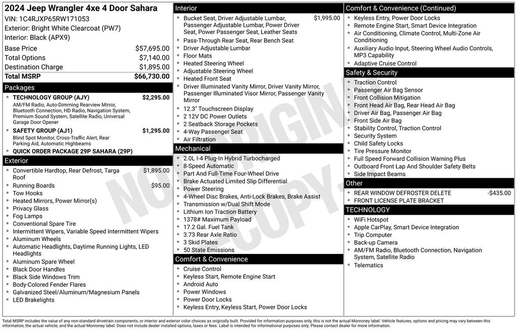 Meticulously inspected and expertly detailed, this Wrangler Sahara 4xe boasts an impressive array of premium features that set it apart from the competition. Admire the sleek, eye-catching White exterior, complemented by the bold, three-piece hard top. Step inside and be captivated by the luxurious Black McKinley-trimmed seats, offering unparalleled comfort and support.