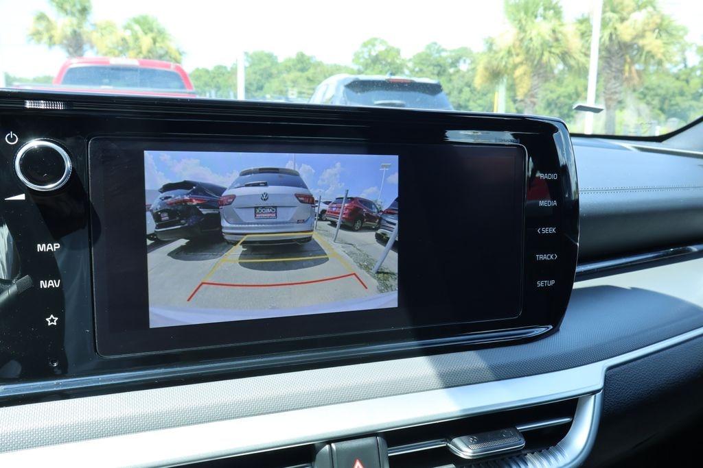 2023 Kia K5 GT-Line Check out all these great option's 4-Wheel Disc Brakes, 6 Speakers, ABS brakes, Air Conditioning, Alloy wheels, AM/FM radio: SiriusXM, Apple CarPlay & Android Auto, Auto High-beam Headlights, Automatic temperature control, Brake assist, Bumpers: body-color, Carpeted Floor Mats, Cloth/SynTex Seat Trim, Delay-off headlights, Driver door bin, Driver vanity mirror, Dual front impact airbags, Dual front side impact airbags, Electronic Stability Control, Four wheel independent suspension, Front anti-roll bar, Front Bucket Seats, Front Center Armrest, Front dual zone A/C, Front fog lights, Front reading lights, Fully automatic headlights, Heated door mirrors, Illuminated entry, Knee airbag, Low tire pressure warning, Navigation System, Occupant sensing airbag, Outside temperature display, Overhead airbag, Overhead console, Panic alarm, Passenger door bin, Passenger vanity mirror, Power door mirrors, Power driver seat, Power steering, Power windows, Radio data system, Radio: AM/FM/MP3 Audio System, Rear anti-roll bar, Rear seat center armrest, Rear side impact airbag, Rear window defroster, Remote keyless entry, Security system, Speed control, Speed-sensing steering, Split folding rear seat, Spoiler, Sport steering wheel, Steering wheel mounted audio controls, Tachometer, Telescoping steering wheel, Tilt steering wheel, Traction control, Trip computer, Turn signal indicator mirrors, Variably intermittent wipers, Wheel Locks, and Wheels: 18" Gloss Black Machined Finish Alloy. 27/37 City/Highway MPG