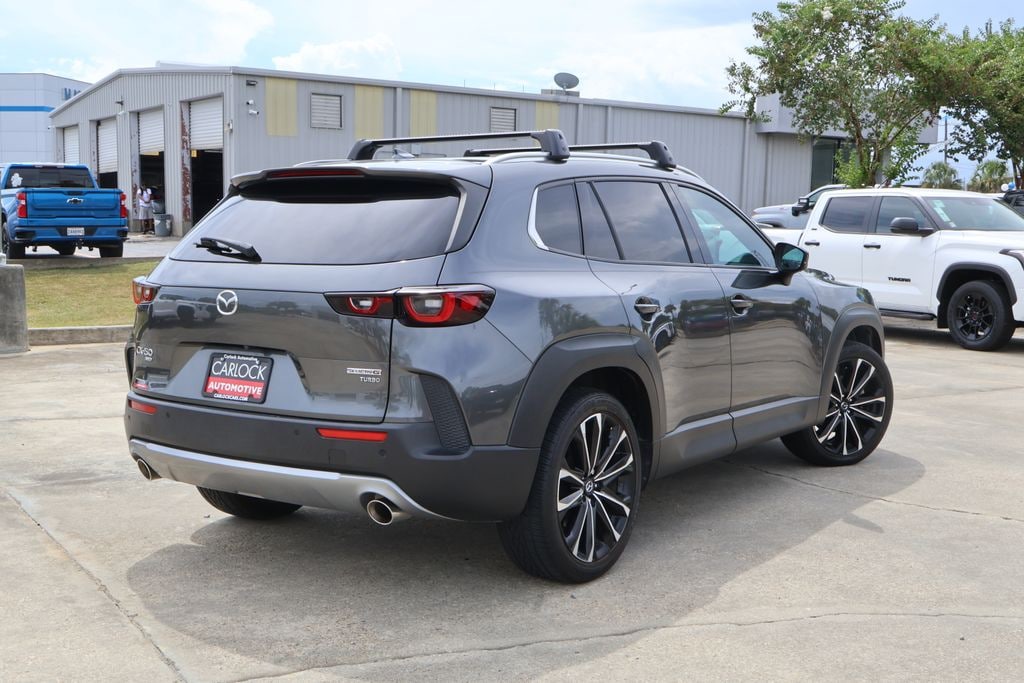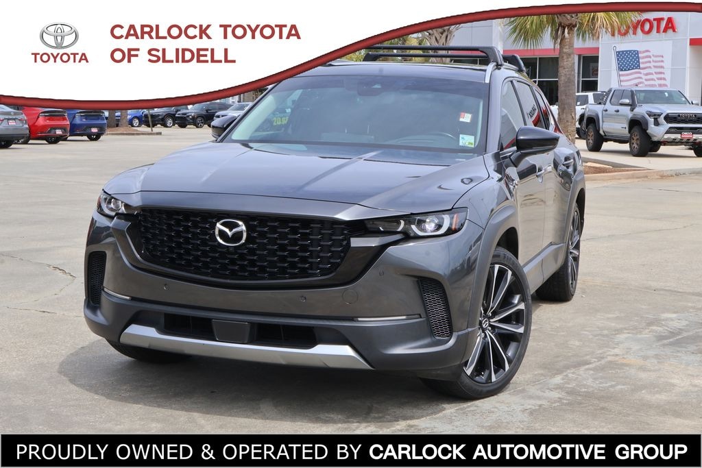 2023 Mazda CX-50 2.5 Turbo Premium Plus Package Check out all these great option's AppLink/Apple CarPlay and Android Auto, Auto High-beam Headlights, Heads-Up Display, Heated & Ventilated Front Bucket Seats, Heated rear seats, Heated steering wheel, Leather Seat Trim, Memory seat, Power Liftgate, Power moonroof, 12 Speakers, 20" x 8J Aluminum Alloy Wheels, 3.841 Axle Ratio, 4-Wheel Disc Brakes, ABS brakes, Air Conditioning, Alloy wheels, AM/FM radio: SiriusXM, Auto-dimming door mirrors, Auto-dimming Rear-View mirror, Automatic temperature control, Brake assist, Bumpers: body-color, Compass, Delay-off headlights, Driver door bin, Driver vanity mirror, Dual front impact airbags, Dual front side impact airbags, Electronic Stability Control, Emergency communication system: MAZDA CONNECT, Front anti-roll bar, Front Bucket Seats, Front Center Armrest w/Storage, Front dual zone A/C, Front reading lights, Front wheel independent suspension, Fully automatic headlights, Garage door transmitter: HomeLink, Heated door mirrors, Heated front seats, Illuminated entry, Knee airbag, Leather Shift Knob, Leather steering wheel, Low tire pressure warning, Machine Gray Metallic Paint Charge, Navigation system: MAZDA CONNECT, Occupant sensing airbag, Outside temperature display, Overhead airbag, Overhead console, Panic alarm, Passenger door bin, Passenger vanity mirror, Power door mirrors, Power driver seat, Power passenger seat, Power steering, Power windows, Radio data system, Radio: AM/FM/HD Audio System, Rain sensing wipers, Rear seat center armrest, Rear window defroster, Rear window wiper, Remote keyless entry, Speed control, Speed-sensing steering, Split folding rear seat, Spoiler, Steering wheel mounted audio controls, Tachometer, Telescoping steering wheel, Tilt steering wheel, Traction control, Trip computer, Turn signal indicator mirrors, Variably intermittent wipers, and Ventilated front seats. 23/29 City/Highway MPG
