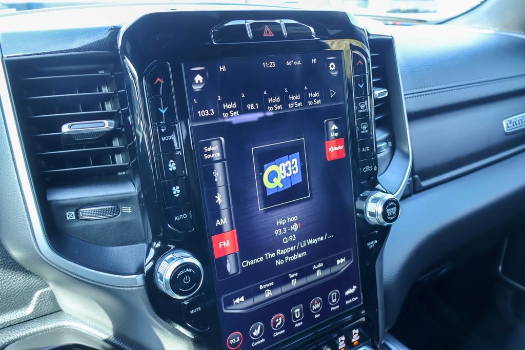 2020 Ram 1500 Laramie Check out all these great option's Bed Utility Group (Spray In Bedliner), Laramie Level 1 Equipment Group (Auto High Beam Headlamp Control, Blind Spot & Cross Path Detection, Foam Bottle Insert (Door Trim Panel), Rain Sensitive Windshield Wipers, Rear 60/40 Folding Split Recline Seat, Remote Tailgate Release, and Tailgate Ajar Warning Lamp), Quick Order Package 27H Laramie, Sport Appearance Package (Black Interior Accents, Body Color Door Handles, Body Color Exterior Mirrors, Body Color Front Bumper, Body Color Premium Power Mirrors, Body Color Rear Bumper w/Step Pads, Grille Surround 3 Body Color Tex 2 Black, Sport Decal, Sport Performance Hood, and Wheels: 20" x 9" Premium Painted w/Inserts), #1 Seat Foam Cushion, 1-Yr SiriusXM Guardian Trial, 10 Speakers, 12" Touchscreen Display, 3 Rear Seat Head Restraints, 3.21 Rear Axle Ratio, 4 Way Front Headrests, 4-Wheel Disc Brakes, 48V Belt Starter Generator, 4G LTE Wi-Fi Hot Spot, 5-Year SiriusXM Traffic Service, 5-Year SiriusXM Travel Link Service, 8.4" Touchscreen Display, ABS brakes, Adjustable pedals, Air Conditioning, Alloy wheels, AM/FM radio: SiriusXM, Anti-Spin Differential Rear Axle, Apple CarPlay, Apple CarPlay/Android Auto, Audio memory, Auto-dimming door mirrors, Auto-dimming Rear-View mirror, Automatic temperature control, Brake assist, Bumpers: chrome, Compass, Delay-off headlights, Disassociated Touchscreen Display, Dome Dual LED Reading Lamp, Driver door bin, Driver Seat Memory, Driver vanity mirror, Dual front impact airbags, Dual front side impact airbags, Dual-Pane Panoramic Sunroof, Electronic Stability Control, For Details, Visit DriveUconnect.com, Front & Rear Rubber Floor Mats, Front anti-roll bar, Front Center Armrest w/Storage, Front dual zone A/C, Front fog lights, Front reading lights, Front Seat Back Map Pockets, Front wheel independent suspension, Fully automatic headlights, Garage door transmitter, Google Android Auto, GPS Antenna Input, GPS Navigation, HD Radio, Heated door mirrors, Heated Front Seats, Heated front seats, Heated Steering Wheel, Heated steering wheel, Illuminated entry, Integrated Center Stack Radio, Leather steering wheel, Leather Trim 40/20/40 Bench Seat, LED Dome/Reading Lamp, Low tire pressure warning, Memory seat, No Satellite Coverage w/HI/AK/PR/VI/GU, Occupant sensing airbag, Outside temperature display, Overhead airbag, Overhead console, Panic alarm, ParkSense Front/Rear Park Assist w/Stop (DISC), ParkView Rear Back-Up Camera, Passenger door bin, Passenger vanity mirror, Pedal memory, Power 4-Way Driver Lumbar Adjust, Power 4-Way Passenger Lumbar Adjust, Power 8-Way Driver & Passenger Seats, Power door mirrors, Power driver seat, Power passenger seat, Power steering, Power windows, Radio data system, Radio: Uconnect 12 w/Navigation, Radio: Uconnect 4 w/8.4" Display, RamBox Cargo Management System, Rear 60/40 Folding Seat, Rear anti-roll bar, Rear seat center armrest, Rear step bumper, Rear window defroster, Remote keyless entry, Security system, SiriusXM Satellite Radio, SiriusXM Traffic Plus, SiriusXM Travel Link, SiriusXM w/360L, Speed control, Split folding rear seat, Steering wheel mounted audio controls, Tachometer, Telescoping steering wheel, Tilt steering wheel, Traction control, Trip computer, Turn signal indicator mirrors, USB Host Flip, Variably intermittent wipers, Ventilated Front Seats, Ventilated front seats, Voltmeter, and Wheels: 18" x 8" Aluminum Base PainteD. Recent Arrival!