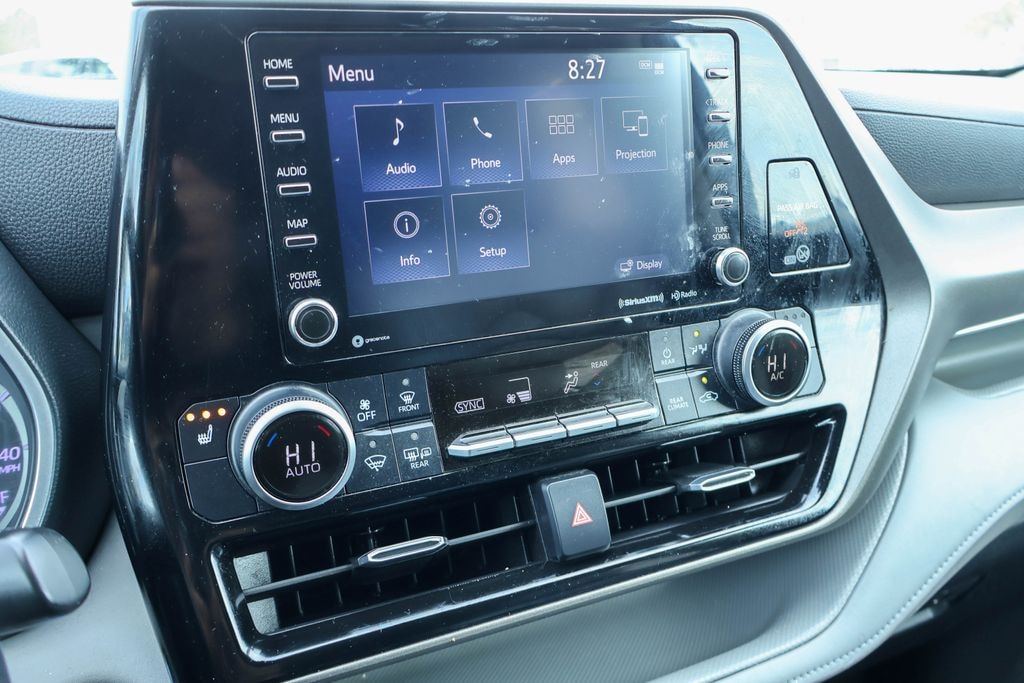 2020 Toyota Highlander Hybrid XLE Check out all these great option's 3.542 Axle Ratio, 3rd row seats: split-bench, 4-Wheel Disc Brakes, 6 Speakers, ABS brakes, Air Conditioning, Alloy wheels, AM/FM radio: SiriusXM, Apple CarPlay/Android Auto, Auto High-beam Headlights, Auto-dimming Rear-View mirror, Automatic temperature control, Brake assist, Bumpers: body-color, Carpet Floor Mats, Delay-off headlights, Driver door bin, Driver vanity mirror, Dual front impact airbags, Dual front side impact airbags, Electronic Stability Control, Emergency communication system: Safety Connect with 1-year trial, Exterior Parking Camera Rear, Four wheel independent suspension, Front anti-roll bar, Front Bucket Seats, Front Center Armrest, Front dual zone A/C, Front fog lights, Front reading lights, Fully automatic headlights, Garage door transmitter: HomeLink, Heated door mirrors, Heated Front Bucket Seats, Heated front seats, Illuminated entry, Knee airbag, Leather Shift Knob, Low tire pressure warning, Occupant sensing airbag, Outside temperature display, Overhead airbag, Overhead console, Panic alarm, Passenger door bin, Passenger vanity mirror, Power door mirrors, Power driver seat, Power Liftgate, Power moonroof, Power passenger seat, Power steering, Power windows, Radio: Audio Plus (T1 Hi), Rear air conditioning, Rear anti-roll bar, Rear reading lights, Rear window defroster, Rear window wiper, Reclining 3rd row seat, Remote keyless entry, Roof rack: rails only, Security system, SofTex Seat Trim, Speed control, Speed-sensing steering, Split folding rear seat, Spoiler, Steering wheel mounted audio controls, Telescoping steering wheel, Tilt steering wheel, Traction control, Trip computer, Turn signal indicator mirrors, Variably intermittent wipers, and Wheels: 18" Machined-Finish Alloy. 35/34 City/Highway MPG