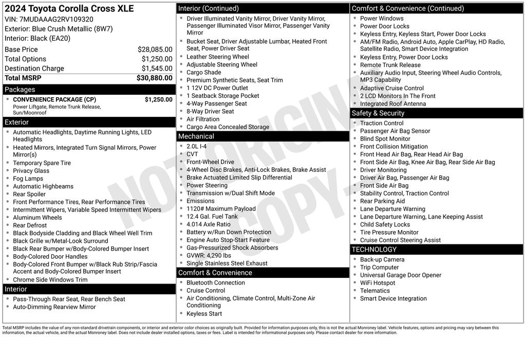 Discover the perfect balance of style, technology, and versatility with the 2024 Toyota Corolla Cross XLE. This exceptional crossover SUV is designed to elevate your driving experience and meet the demands of your active lifestyle.