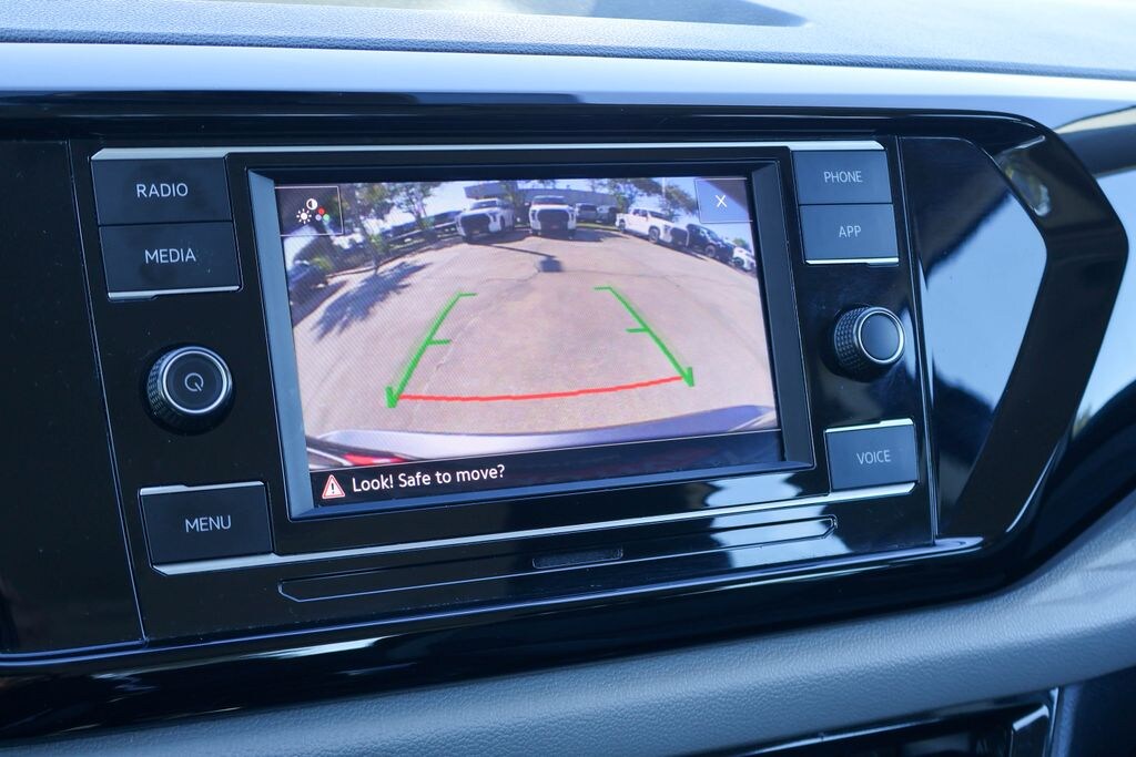 2024 Volkswagen Taos 1.5T S Check out all these great option's 3.23 Axle Ratio, 4-Wheel Disc Brakes, 6 Speakers, ABS brakes, Active Blind Spot Monitor, Air Conditioning, Alloy wheels, AM/FM radio, Auto High-beam Headlights, Brake assist, Bumpers: body-color, Cloth Seating Surfaces, Compass, Delay-off headlights, Driver door bin, Driver vanity mirror, Dual front impact airbags, Dual front side impact airbags, Electronic Stability Control, Emergency communication system: VW Car-Net Safe & Secure 5-year, Exterior Parking Camera Rear, Front anti-roll bar, Front Bucket Seats, Front Center Armrest, Front reading lights, Front Strut Rear Torsion Beam Suspension, Front wheel independent suspension, Fully automatic headlights, Heated steering wheel, Illuminated entry, Leather Shift Knob, Low tire pressure warning, Occupant sensing airbag, Outside temperature display, Overhead airbag, Overhead console, Panic alarm, Passenger door bin, Passenger vanity mirror, Power door mirrors, Power steering, Power windows, Radio data system, Radio: Composition Color AM/FM, Rain sensing wipers, Rear anti-roll bar, Rear seat center armrest, Rear window defroster, Rear window wiper, Remote keyless entry, Roof rack: rails only, Speed control, Speed-sensing steering, Split folding rear seat, Spoiler, Steering wheel mounted audio controls, Tachometer, Telescoping steering wheel, Tilt steering wheel, Traction control, Trip computer, Variably intermittent wipers, and Wheels: 17" Silver Painted Alloy. 28/36 City/Highway MPG
